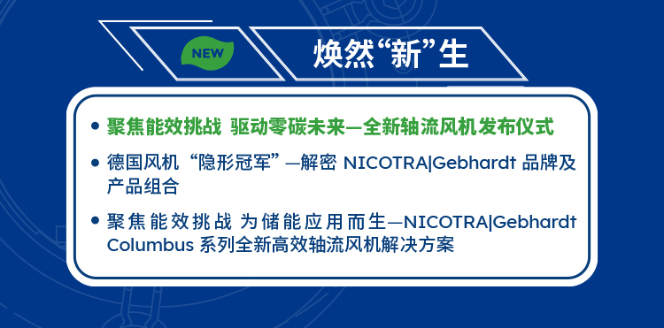 NICOTRA Gebhardt是Regal Rexnord集团旗下,拥有超过半个多世纪悠久历史的欧洲风机品牌,NICOTRA Gebhardt自上世纪60年代初伊始便潜心投入风机产品的生产制造,专注于绿色节能技术。此次,直击储能热管理应用的客户痛点,NICOTRA Gebhardt推出全新高效轴流风机系列,为客户提供更专业,更高效的储能风机解决方案。